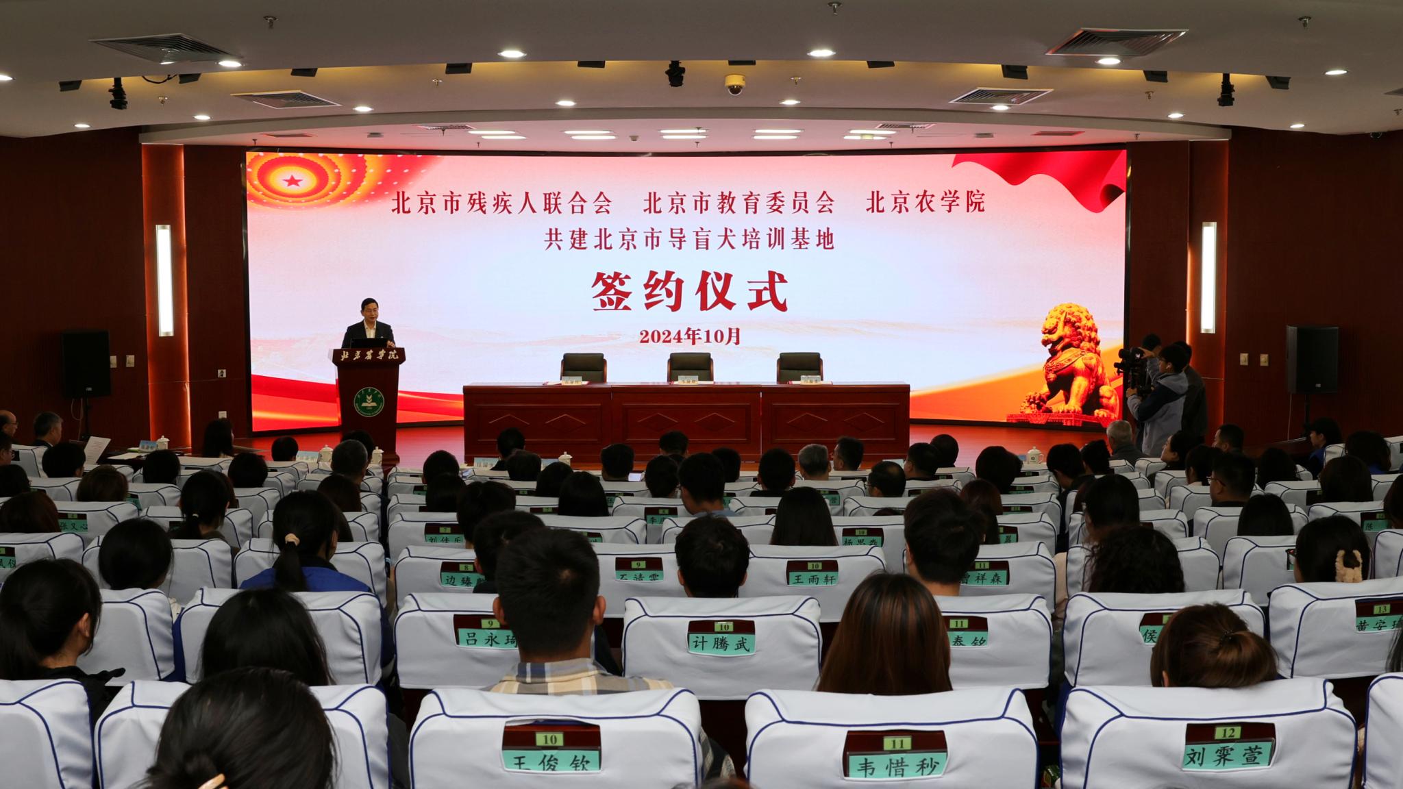 10月31日,北京市残疾人联合会、北京市教育委员会、beat365中文官方网站共建北京市导盲犬培训基地签约仪式在beat365中文官方网站举行。北京市残疾人联合会党组书记、理事长陆晓光,北京市委教育工委委员、市教委副主任张耀天,北京市残疾人福利基金会理事长侯玉兰,beat365中文官方网站党委书记赵锋,党委副书记、院长段留生出席签约仪式。