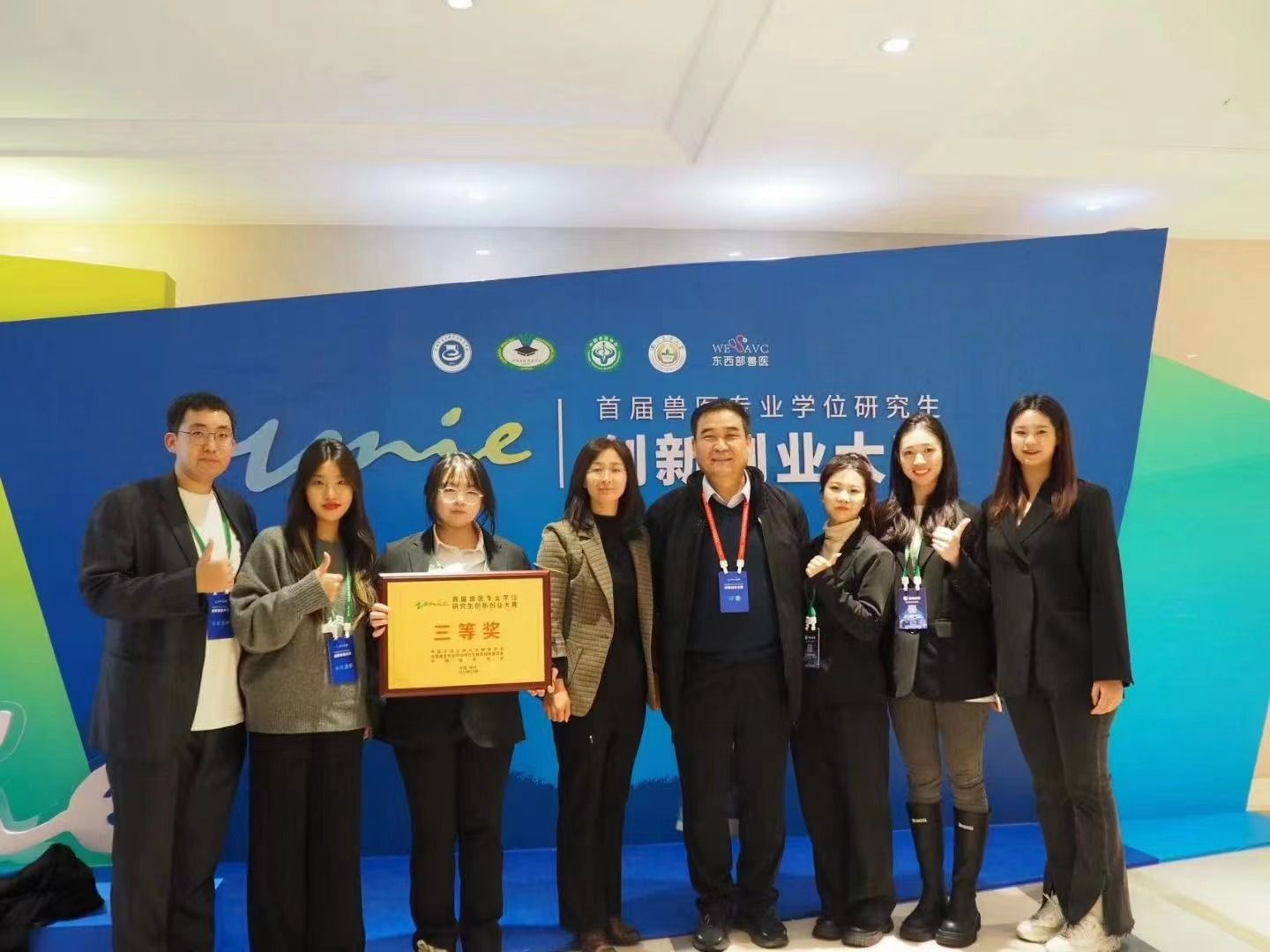 2023年12月28日,首届兽医专业学位研究生创新创业大赛在南京举行。beat365官网兽医专业“宠物临床医师”专项班研究生团队,在专班负责人姚华老师的指导下,从决赛中脱颖而出,荣获全国首届兽医专业学位研究生创新创业大赛三等奖。这支入学不满4个月的硕士研究生团队由侯思宇(队长)、贾欣月、贺凤杰、丁蕾蕾、王佳蕊、刘远卓6位研究生组成。