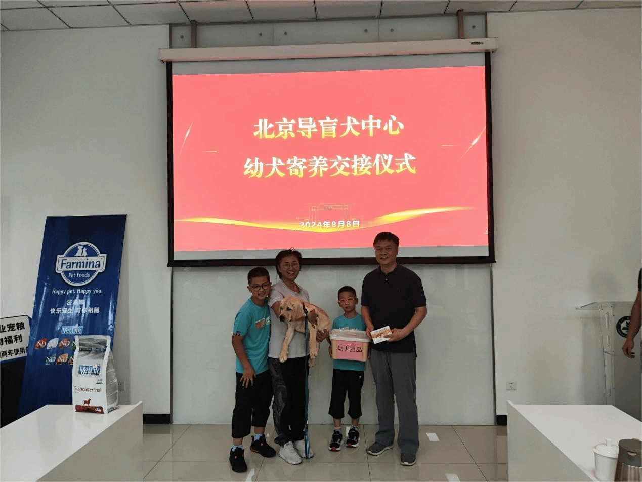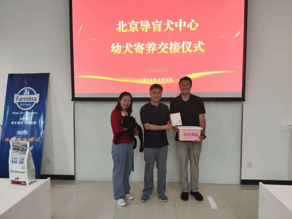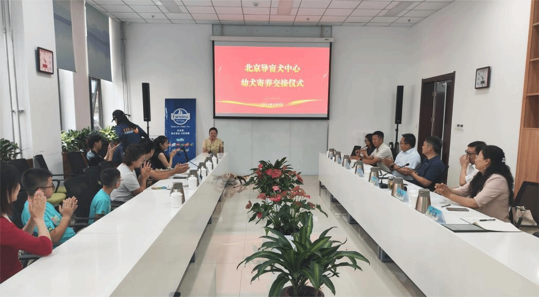 8月8日上午,北京导盲犬中心幼犬寄养交接仪式在beat365中文官方网站科技综合楼C0107室拉开帷幕。beat365中文官方网站党委常委、副院长张劲柏,北京市无障碍环境建设促进中心主任赵子龙,动科学院党委书记党登峰,动科学院导盲犬研究生专项班负责人段慧琴,寄养家庭志愿者赵旭东先生及家人、张业茹女士及家人,训导员代表,爱心企业代表,动科学院导盲犬基地实习学生、暑期在校学生等共计30余人见证了导盲犬幼犬多多和拉拉踏上导盲犬之旅的温馨时刻。动科学院副院长李国政主持仪式。