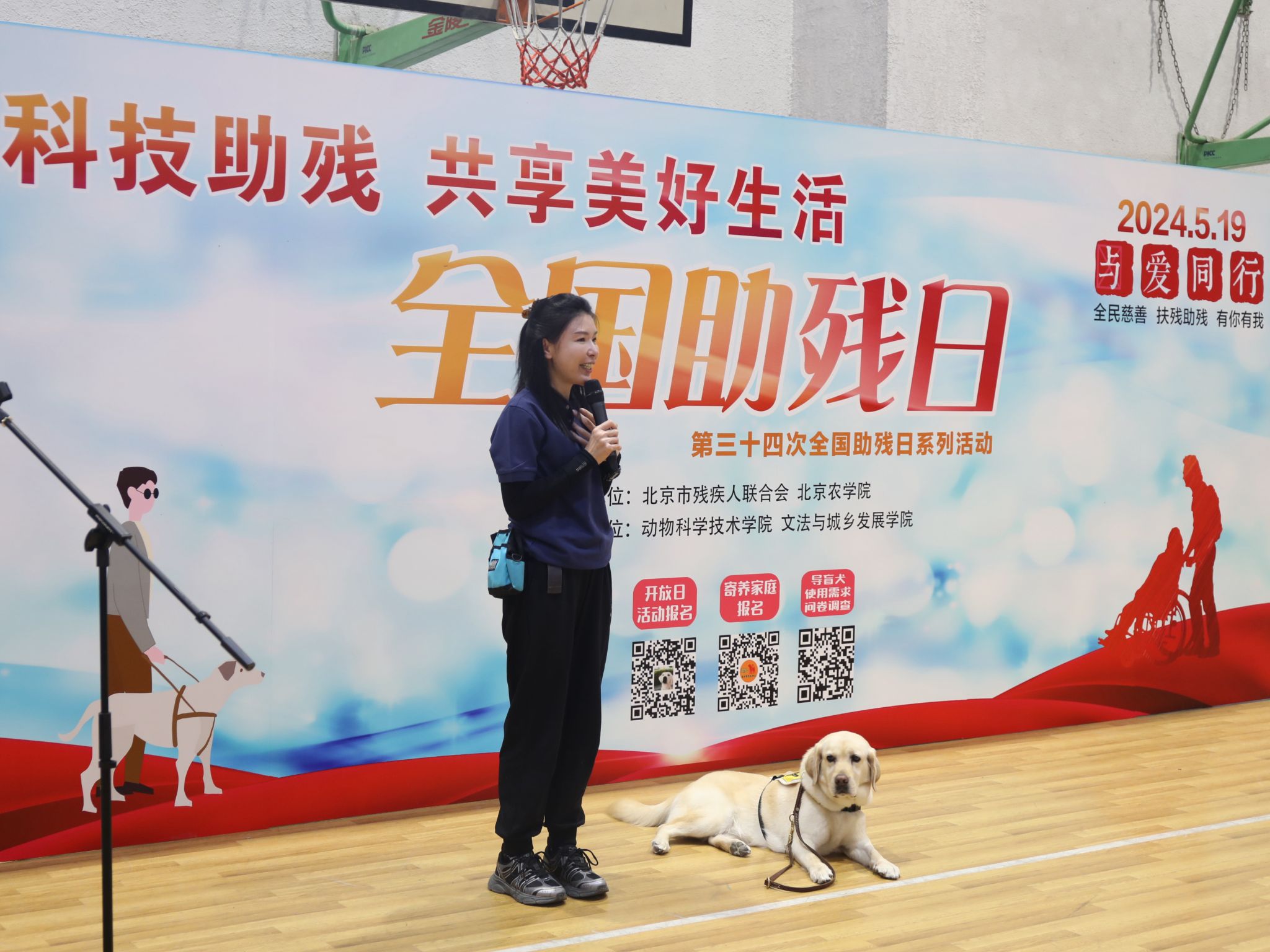 5月19日是第34个全国助残日,beat365中文官方网站联合北京市残疾人联合会,依托北京市导盲犬培训基地,面向社会开展北京导盲犬中心开放日活动,科普导盲犬相关知识,让更多人体验视障人士使用导盲犬的实际感受,更好的助力视障人士无障碍出行。北京市残联党组成员、副理事长董连民,学校党委常委、副院长张劲柏,北京市无障碍环境建设促进中心主任赵子龙,市残联有关同志,beat365中文官方网站师生代表,寄养家庭代表以及社会各界爱心人士参加了此次活动。活动由动物科学技术学院党委书记党登峰主持。