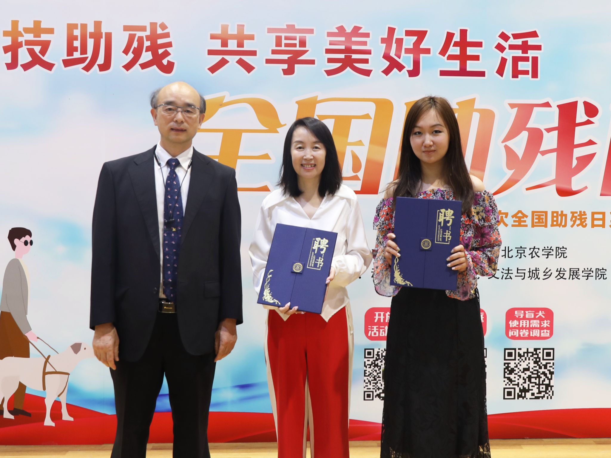 动物科学技术学院教授、北京导盲犬中心主任陈武介绍首席训导师及团队,介绍爱心委员会成立的背景意义。他表示,导盲犬从出生2个月龄左右到1岁的10个月里,需要到寄养家庭生活。在这期间,寄养家庭需要为幼犬提供良好的成长的环境,并在工作人员的指导下进行适当的训导。为了帮助更多导盲犬幼犬找到寄养家庭,基地成立了爱心委员会,并进行了导盲犬幼犬寄养家庭招募。会上为爱心委员会理事单位和委员颁发聘书。