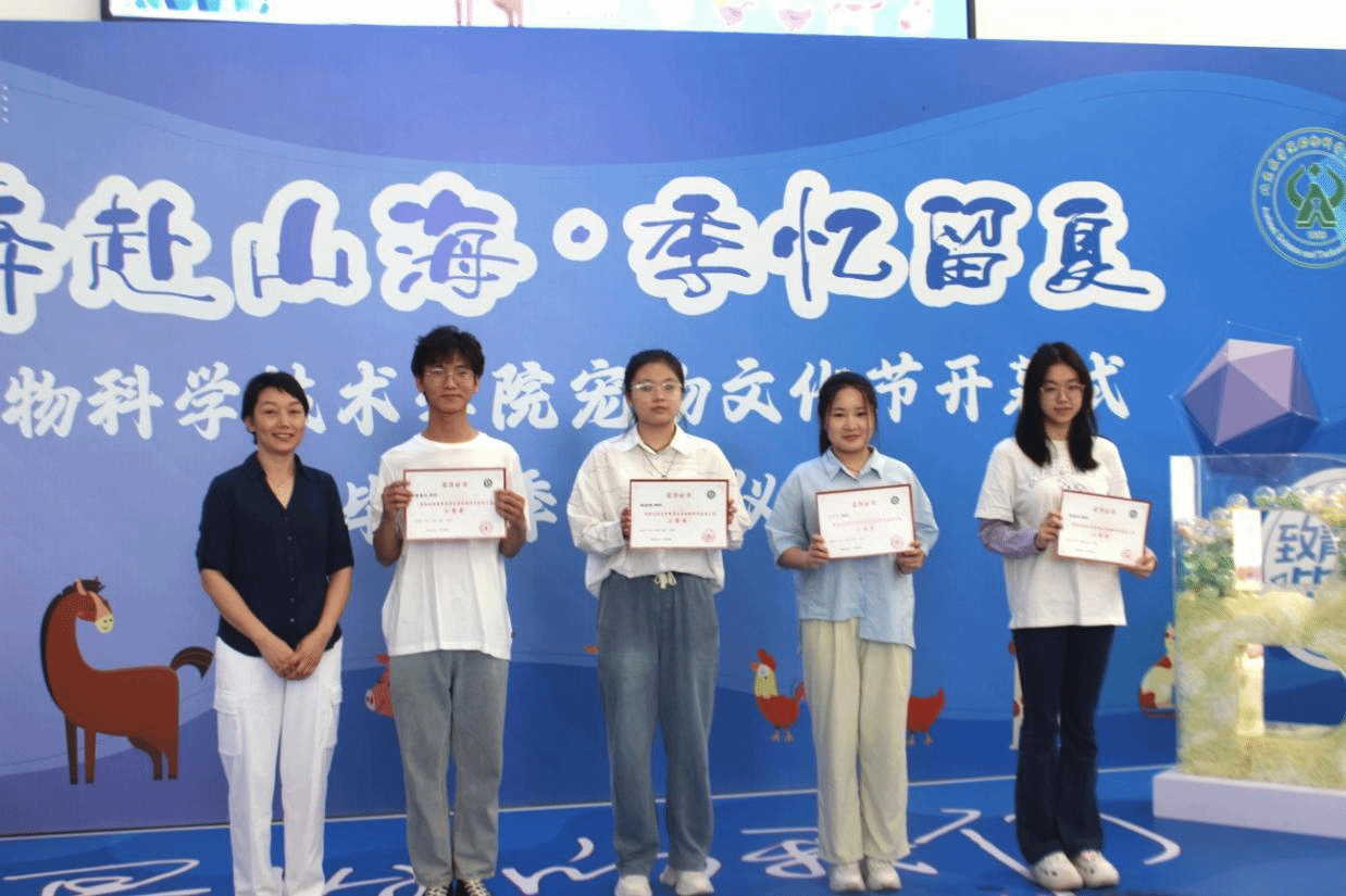 活动现场,党登峰宣布动科学院举办第十二届宠物文化节开幕,俞涛、姚华、董虹为第五届动物科学技能大赛获奖同学颁奖。