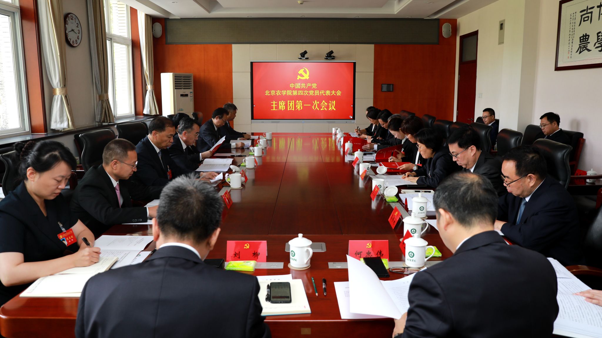 预备会议结束后,主席团第一次会议在行政楼第三会议室召开。会议由大会秘书长仲丛生主持。会议明确了大会主席团任务,表决通过了大会副秘书长名单、列席人员名单、大会日程、大会秘书处工作机构,审议通过党费收缴使用管理情况报告以及其他需要确定的事项。