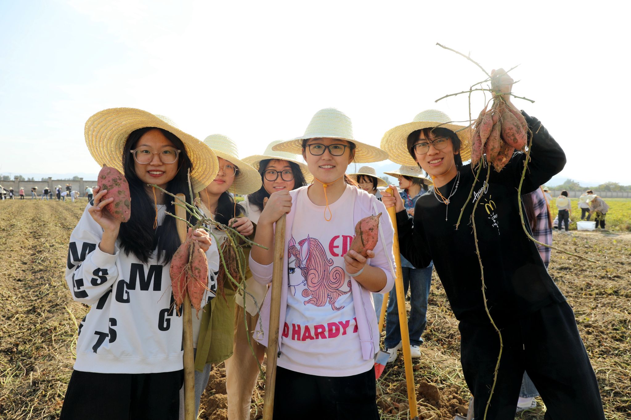 植物科学技术学院园艺专业学生孙彤和苏雨桐一边挖红薯一边复习上午在课堂上学到的专业知识:“上午园艺植物栽培学课上,老师教我们认识园艺植物的组织器官,下午又来到田间地头一边劳动一边学习,专业知识一下子记牢了。”文法与城乡发展学院法学2班王欣蕊与同学配合,挖到很多红薯与花生。捧着劳动的果实,她说:“来到田间才能更深感受到农业的含义,亲身劳作能真正体会劳动的辛苦和丰收的喜悦,这堂‘耕读教育课’非常有意义。”