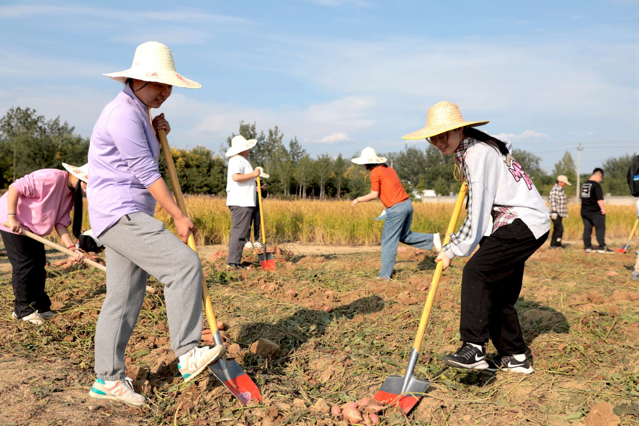 参加活动的百余名北京市第一〇一中学未来科学城学校师生一边在专业老师指导下学习采收,一边了解农作物的生长习性、种植方式。带队教师表示这不仅是一堂劳动实践课,也是一堂农事知识课、农业知识科普课。中学生们兴奋地体验各种农具的使用,分工协作刨挖果实,“这样的劳动课太有意思了,不仅学会了劳作,了解了很多作物知识,还享受了采收的乐趣。”一位同学说。