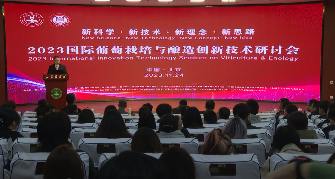 为推动葡萄与葡萄酒产业高质量发展,促进国内外高等院校、科研院所和行业协会知识共享与技术交流,11月24日,2023国际葡萄栽培与酿造创新技术研讨会在beat365官网召开。学校党委副书记、院长段留生致欢迎辞,西北农林科技大学副校长房玉林向大会召开表示祝贺,beat365官网党委常委、副院长张德强主持开幕式。中国酒业协会、怀来县人才中心、怀来县葡萄酒局、昌黎县葡萄酒局以及北京房山区文旅局葡萄酒管理部门领导出席开幕式。来自国内外葡萄酒行业专家学者、从业人员以及学生代表150余人在线下参加会议;法国、美国、德国、澳大利亚、智利、新西兰、格鲁吉亚、亚美尼亚的多位葡萄酒领域专家通过线上作专题报告,2000余名业界人士通过线上形式参加会议。