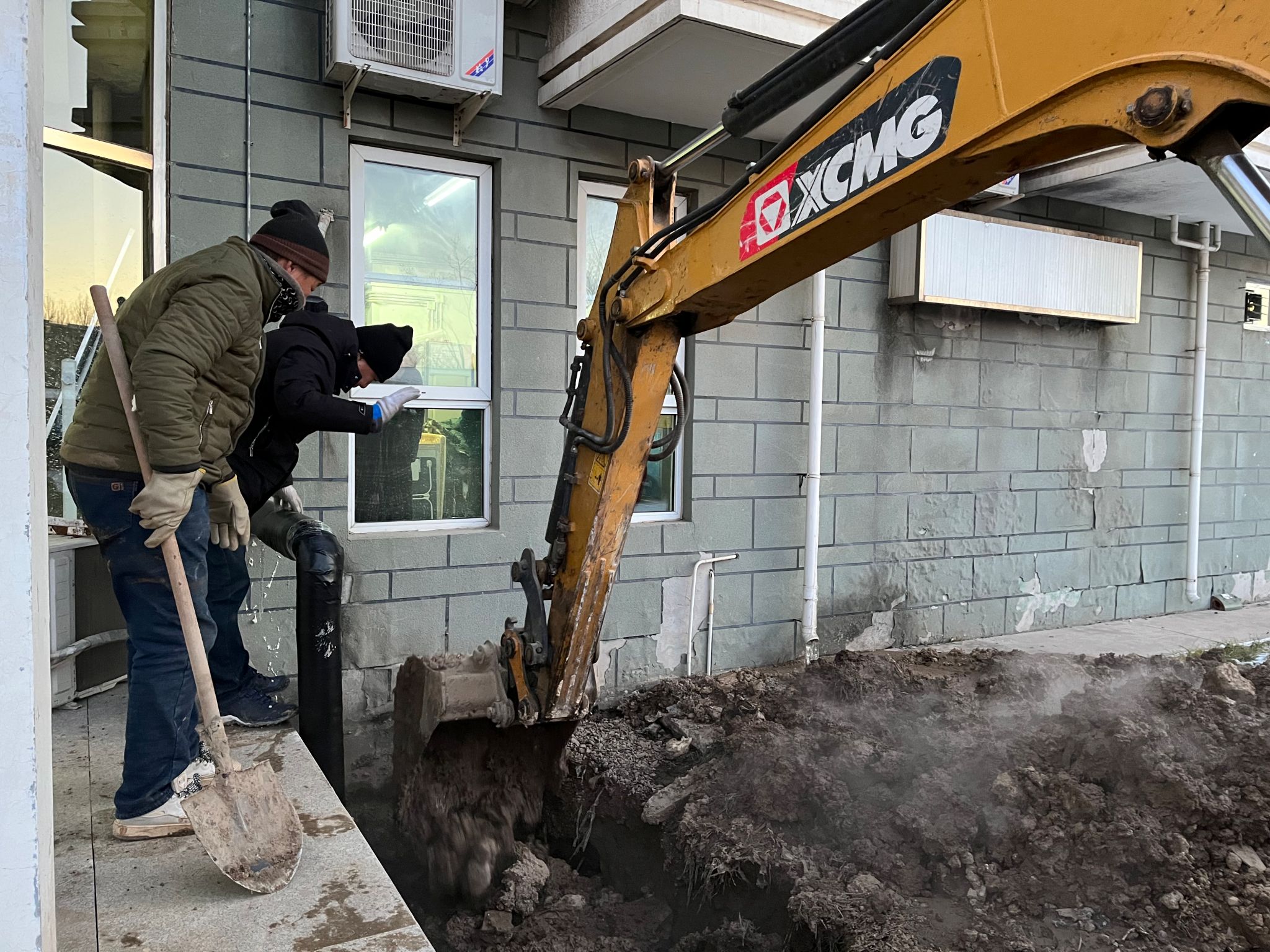 动力服务保障中心迅速调度挖土机进行开挖检修,“有一根主进水管漏水,立即维修!”不顾零下10摄氏度的寒冷,后勤师傅们开始了紧张的抢修工作。“早修好一分钟,宿舍里就早暖和一分钟,我们冷点没关系。”师傅们的双手在寒风中都冻得通红,心里却记挂着学生的冷暖。