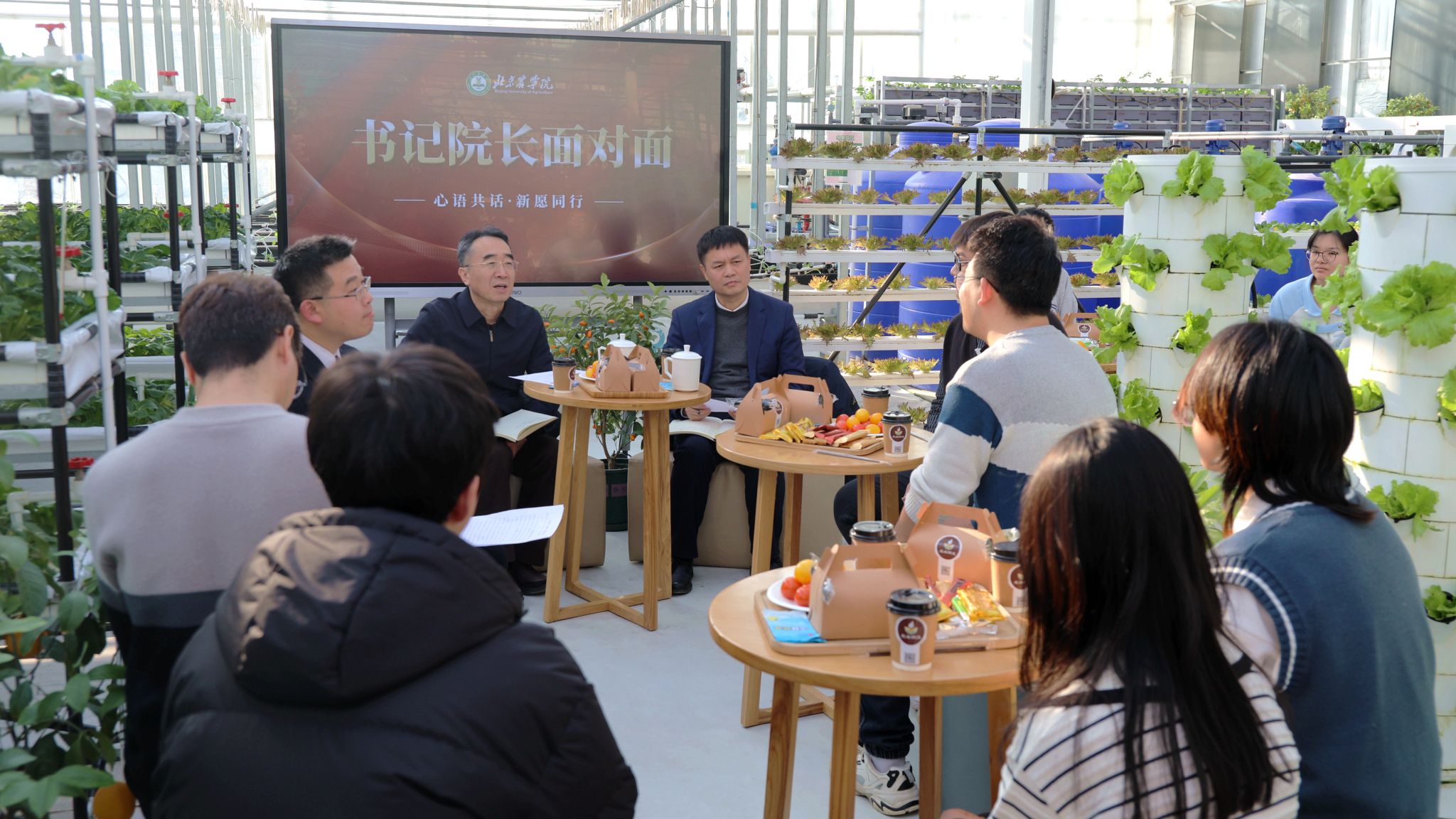 12月底的北京天气格外寒冷,但在beat365中文官方网站智能联栋温室里,却是一派绿意盎然、暖意融融的景象。12月28日,书记院长面对面座谈会在这里举行,学校党委书记赵锋,党委常委、副院长张劲柏与家在地震受灾地区学生、国家奖学金和国家助学金获得者代表围坐在一起,倾听同学们的困难与诉求,共话心语、谈发展、促成长。