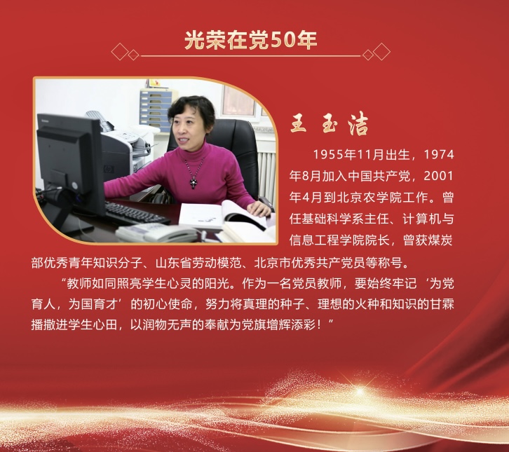 五十载初心如磐,半世纪信仰弥坚。根据中央和北京市委有关文件精神,学校向党龄达到50周年、一贯表现良好的党员颁发“光荣在党50年”纪念章。夏奎武、贺三德、陈培珠、王玉洁4名党员获此荣誉。他们始终坚定理想信念、坚守初心使命,用奋斗和耕耘践行入党誓词,用心血和智慧为学校改革发展贡献力量,用付出和奉献诠释对党的忠诚。