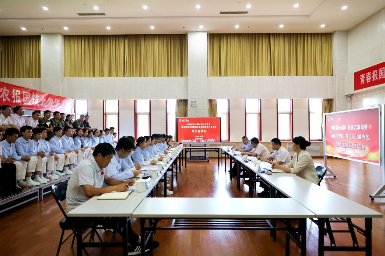 座谈会上,师生代表依次发言,分享参与活动的心得体会。学生代表们深情回顾了自5月集中训练以来,历时114天艰苦训练的日日夜夜,分享了在天安门广场亲眼见证这一历史时刻的激动心情与深刻感悟。同学们纷纷表示,这是一次初心与责任的淬炼,更是一堂终身难忘的爱国主义“大思政课”。未来将把此次参与重大活动的经历转化为今后学习、工作的强大动力,把这份坚持与爱国情怀融入到日常学习生活中,持续深耕专业知识,努力成长为德智体美劳全面发展的知农爱农新型人才,为首都推进乡村全面振兴贡献北农学子的青春力量。