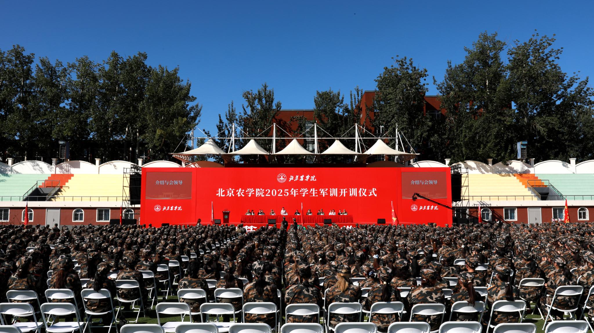 9月8日上午,学校2025级本科生军训开训仪式在运动场举行。党委副书记郑品石,党委常委、副院长武艳,承训部队武警北京市总队机动第三支队领导出席开训仪式。相关职能部门和二级学院负责人,带训教官、随训教师,全体参训学员参加开训仪式。