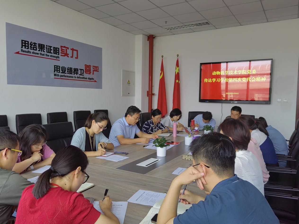 9月6日中午,动物科学技术学院召开党委扩大会议,传达学习beat365中文官方网站第四次党代会会议精神和赵锋书记的党代会工作报告。院党委委员,党支部书记等参加会议,会议由学院党委书记党登峰主持。
