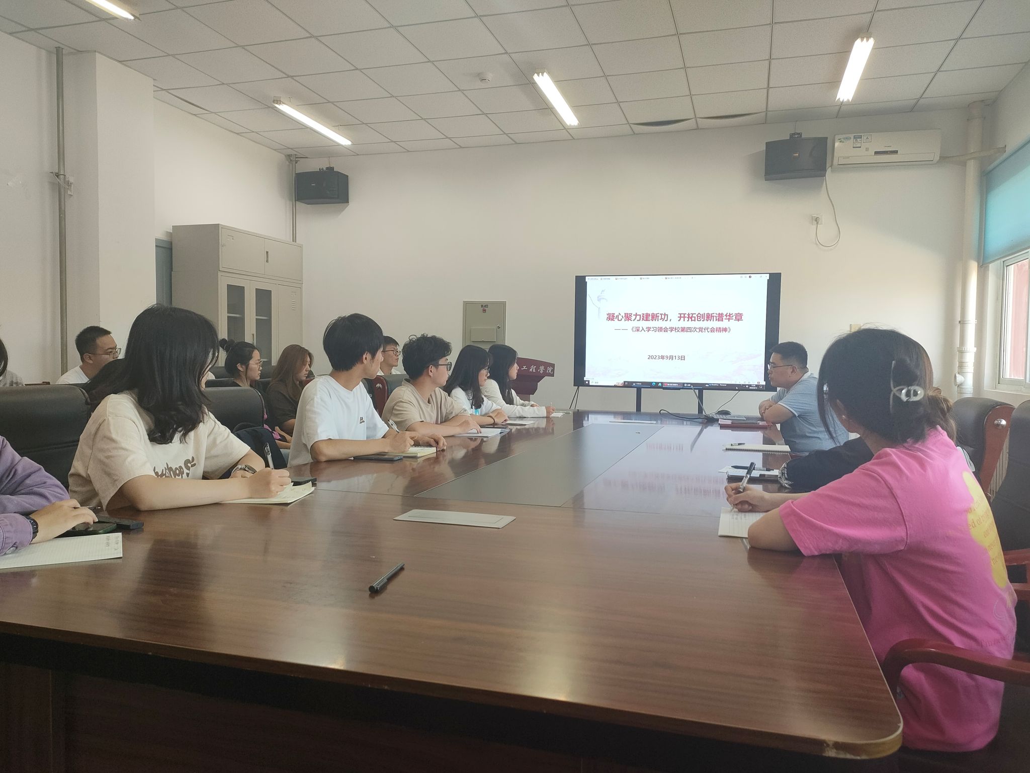 9月13日,计信学院学生会干部在计算机B座102会议室召开会议,集中学习学校第四次党代会精神。党总支副书记、副院长刘京威,全体学生会干部参加会议,会议由学生会主席团成员于杰莹主持。