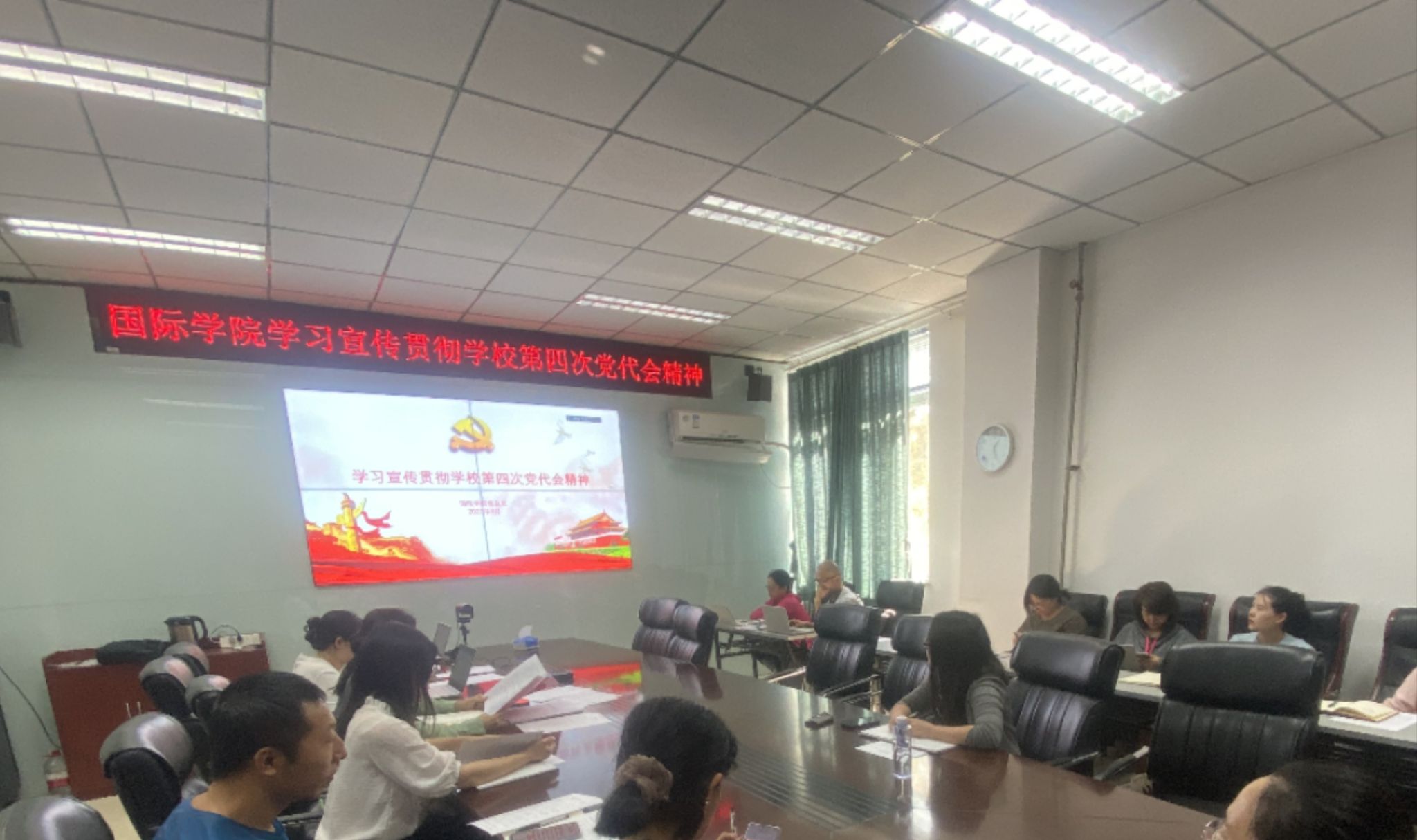 9月20日,国际学院召开全院教职工会议,全面传达学习beat365中文官方网站第四次党代会会议精神。国际学院党总支副书记、第四次党代会党代表霍春艳主持会议。
