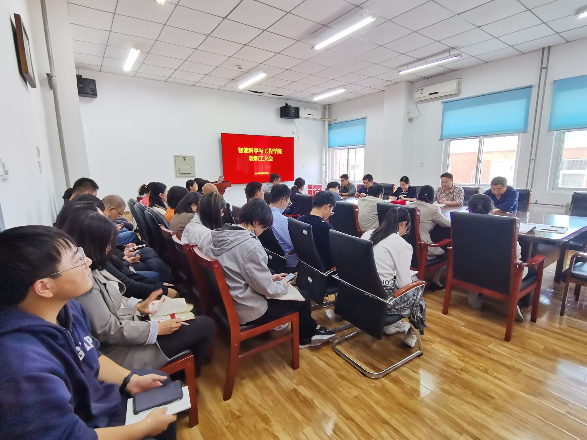 为深入学习贯彻落实学校第四次党代会精神,2023年10月11日下午,智能科学与工程学院召开全体教职工大会。会议由学院党总支副书记、院长韩宝平主持。学院全体教职工参加会议。