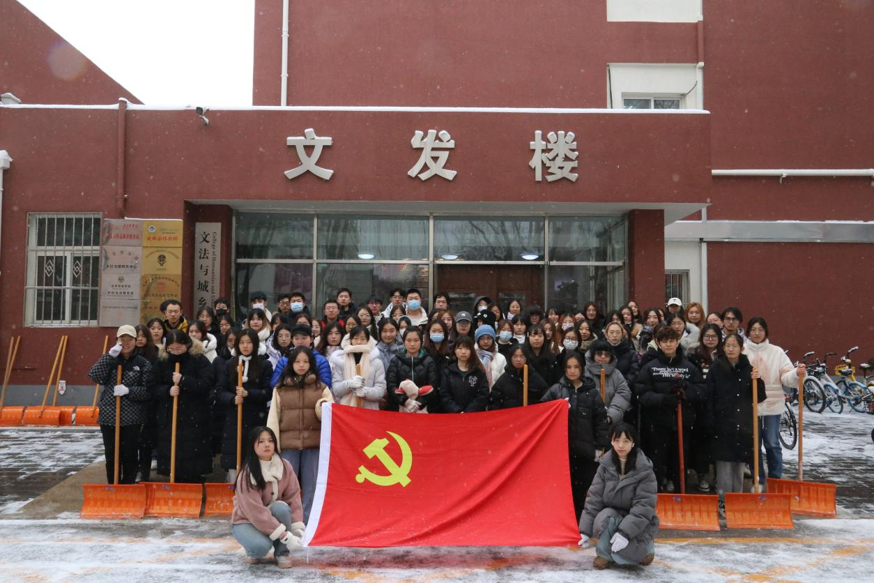 近期,北京市气象台升级发布暴雪橙色预警信号,为积极应对暴雪冰冻天气,保障师生安全畅通出行,文法与城乡发展学院党委快速响应,积极落实学校《beat365中文官方网站扫雪责任区划分方案》,学院领导班子第一时间组织学院教师、学生党员、入党积极分子和学生志愿者,开展多次积雪清扫志愿服务活动,以实际行动践初心和使命。