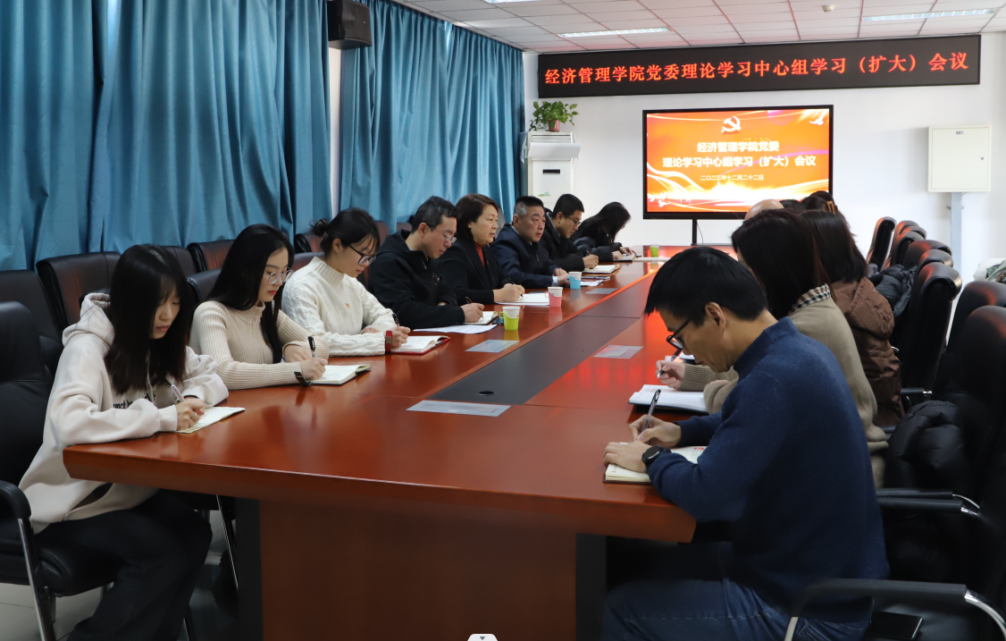 2023年12月22日,经济管理学院党委理论学习中心组召开学习(扩大)会议,学习研讨习近平总书记倡导践行“四下基层”工作方法和工作制度,会议由学院党委书记王万山主持。