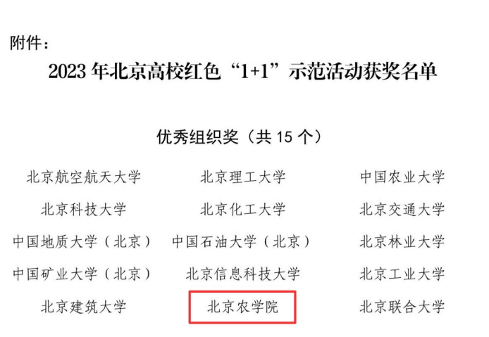 近日,2023年北京高校红色“1+1”示范活动评选结果公布。我院生物工程研究生党支部在全市1615个学生党支部中脱颖而出,荣获三等奖。