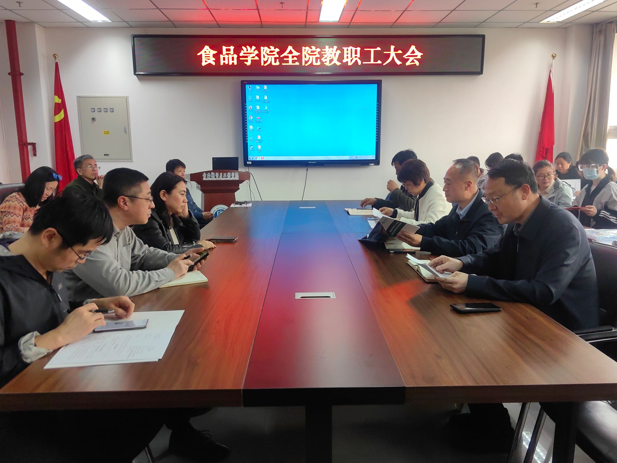 2024年4月12日,食品科学与工程学院召开全体教职工大会,部署动员开展党纪学习教育,推进全年重点工作。会议由学院党委书记靳晓熙主持。