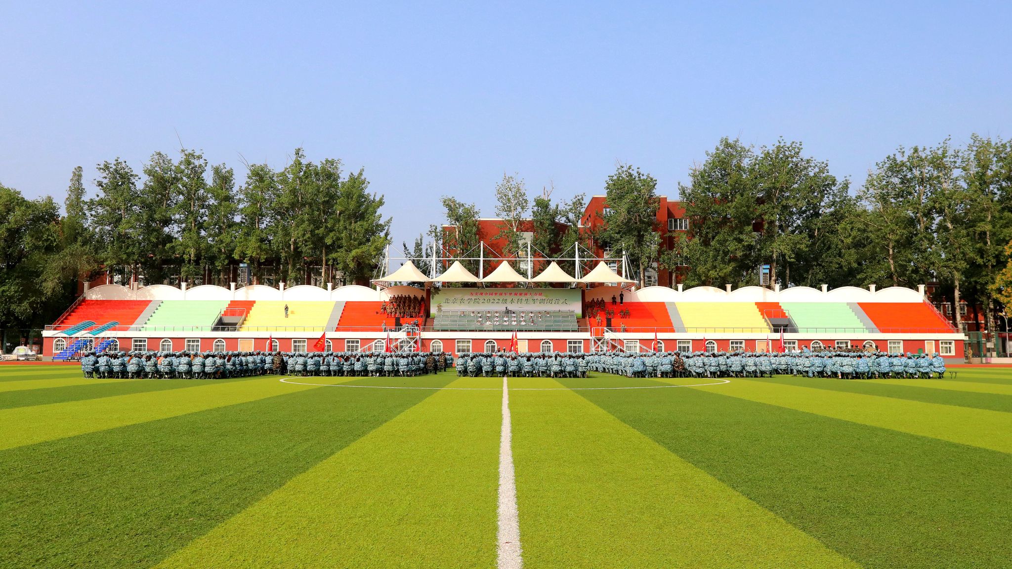 赵锋勉励同学们把军训中学到的好思想、好品德、好作风融入学习和生活中,转化为成长成才的强大动力。他希望同学们坚定理想信念,厚植爱国情怀,以实现中华民族伟大复兴为己任,增强做中国人的志气、骨气、底气,不负时代,不负韶华,不负党和人民的殷切期望,树立为祖国为人民永久奋斗、赤诚奉献的坚定理想;牢记期望嘱托,勇担时代重任,将军训期间养成的严于律己、不畏艰险、迎难而上、努力拼搏的精神融入学习和生活中,把个人发展和祖国命运紧密相连,勇担强农兴农的时代使命,以小我融入大我,用青春奉献祖国;传承北农精神,投入火热实践,牢记“厚德笃行 博学尚农”的校训精神,刻苦学习、勤于实践,在服务乡村振兴的火热实践中经风雨、受锻炼、长才干,为服务新时代首都发展、全面推进乡村振兴贡献青春力量。