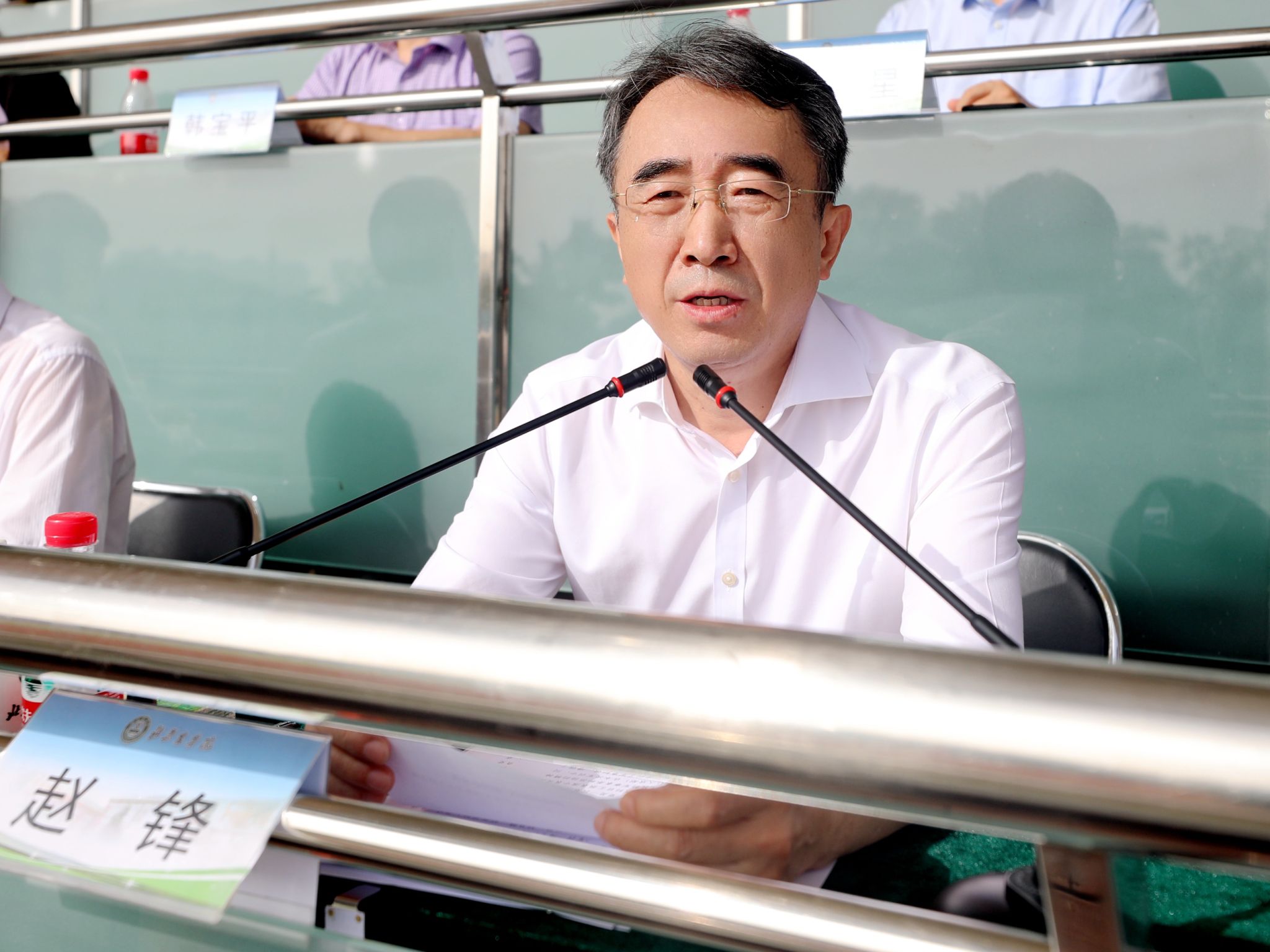 赵锋向全体军训教官、带队教师、学工干部以及相关部门服务保障人员的辛勤付出致以诚挚的感谢,对顺利完成此次军训的所有同学致以热烈的祝贺。他指出,军训不仅是同学们接受国防教育的重要形式,也是学校将主题教育成效转化为育人实效的有效载体。军训中同学们骄阳似火不退缩、烈日当空仍向前,在军训场“亮剑”青春,用行动宣告“强国有我”,充分体现了当代北农青年勇于进取、奋发向上的精神。