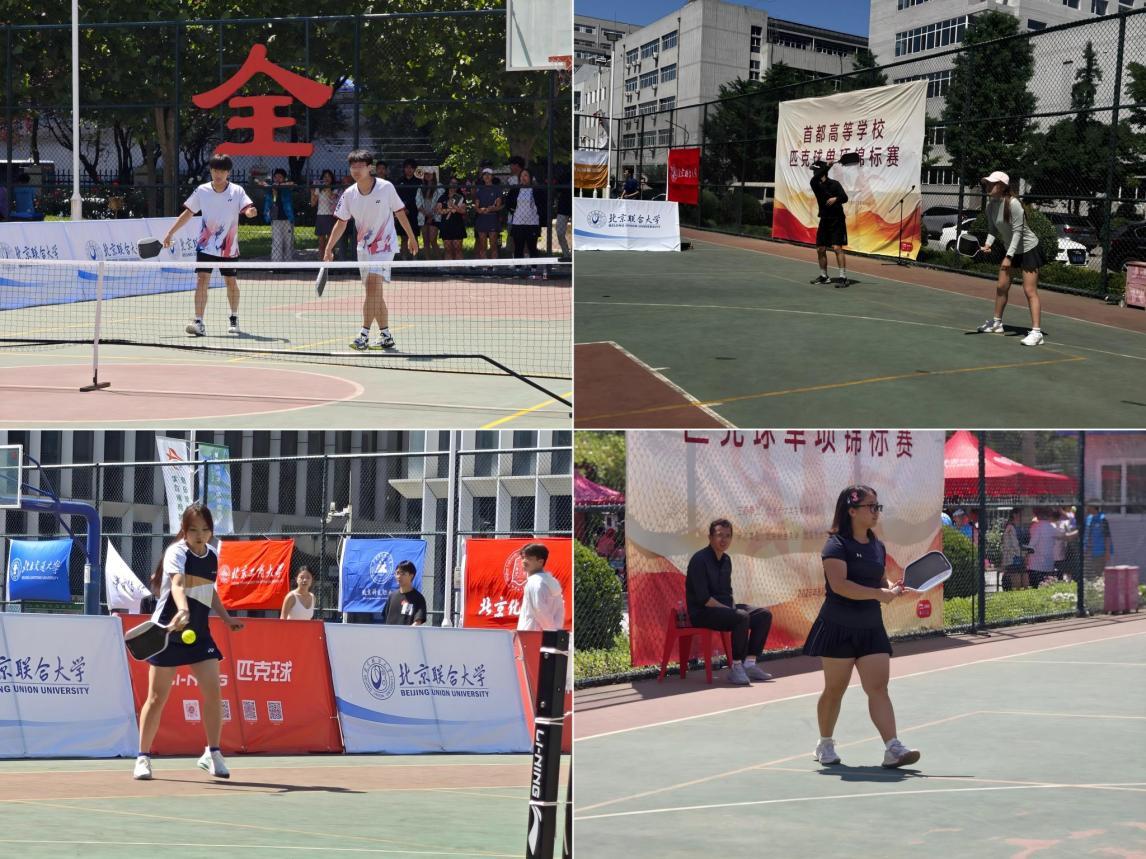 5月24日,由北京市大学生体育协会主办、北京联合大学承办、北京市大学生体育协会匹克球分会执行的首都高等学校首届匹克球单项锦标赛举行。来自27所高校的400余名队员同台竞技。在袁龙辉、王卓识、路正荣三位老师的指导下,beat365官网匹克球队国际学院樊羽佳同学、园林学院安维一荣获普通学生组女子双打亚军,生物与资源环境学院李惟先荣获普通学生组单打季军,食品科学与工程学院万欣蕊获得普通学生组单打第五名。