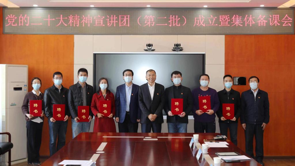 为了深入学习宣传贯彻党的二十大精神,进一步推动党的二十大精神在学校落实落细,11月17日下午,学校党委召开党的二十大精神宣讲团(第二批)成立仪式并组织开展集体备课。宣讲团团长、校党委副书记仲丛生主持会议,并为宣讲团成员颁发聘书。