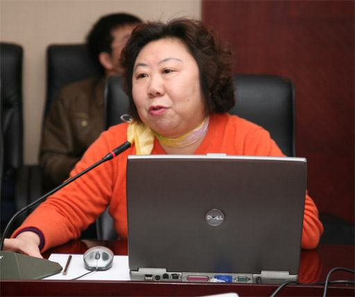 首都医科大学中医药学院党委书记王秀娟介绍院系开展学习实践活动的试点工作经验