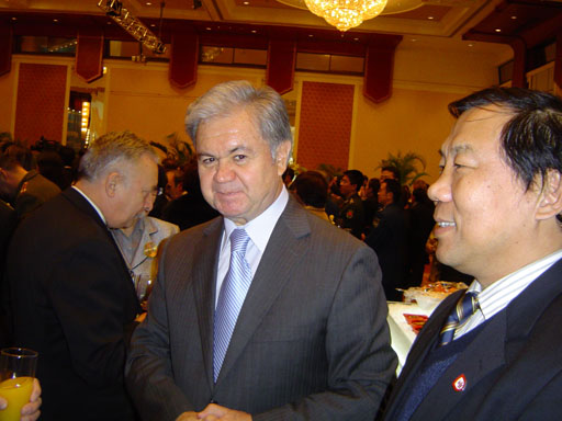 哈萨克斯坦共和国驻华临时代办柯依舍巴耶夫·哈比特先生首先代表正在陪同胡锦涛总书记在中亚进行访问的伊克拉姆·阿德尔别科夫大使致辞。我国原外交部副部长、上海合作组织首任秘书长、中国中亚友好协会会长张德广同志热烈祝贺哈萨克斯坦共和国独立18周年,并高度评价了两国之间的友好合作及传统友谊。在招待会上,哈萨克斯坦驻华使馆专为来宾们准备了精彩的哈萨克民间歌舞。