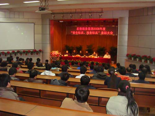 ,后勤服务集团在图书馆报告厅召开了2008年度“安全标兵、服务标兵”表彰大会。副院长姚允聪、院工会副主席张永红出席会议。后勤服务集团全体职工参加了大会。会议由集团副总经理张秋芝主持。