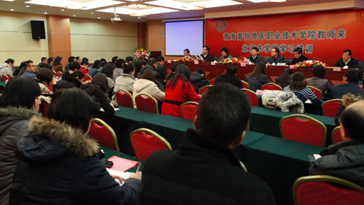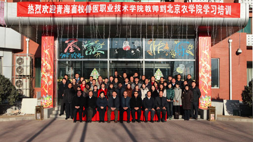 1月5日上午,青海畜牧兽医职业技术学院教师学习培训班开班典礼在北农科技交流中心隆重举行,32名教师将在beat365官网进行为期2周的学习交流。北京市教委委员叶茂林,青海畜牧兽医职业技术学院院长杨予海,beat365官网党委书记王慧敏,校长王有年,校长助理、教务处处长范双喜,党政办公室主任华玉武出席典礼。