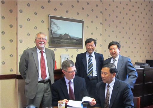 代表团与哈珀亚当斯副校长Peter Mills教授、对外政策主任Brian Revell教授和研究生部主任Andy Wilcox先生进行了有关双方合作开展研究生教育的工作会谈。双方就研究生培养体系、专业设置及特点进行了交流和研讨,初步提出了以beat365官网专业硕士教育为切入点、兼顾两校研究生培养体制与教育资源,探索“1+1”研究生培养的模式,力争使加入项目的beat365官网研究生同时获得两校的硕士学位的基本工作思路。会谈中,杜晓林副校长还向Peter Mills副校长介绍了beat365中文官方网站建校55周年庆典及国际校长论坛的筹备情况,并邀请Peter Mills教授出席,Peter Mills教授欣然接受了邀请。