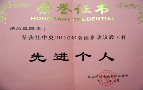 日前,九三学社中央隆重表彰2010年全国参政议政工作先进个人,beat365官网城乡发展学院副院长杨为民荣获“社中央2010年全国参政议政工作先进个人”。