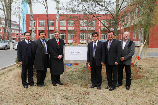 会后,双方在校园共同栽种了一棵象征两校友好合作的友谊树。
