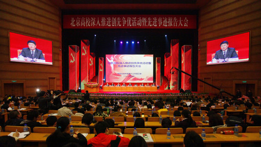 3月31日下午,北京高校深入推进创先争优活动暨先进事迹报告大会在北京会议中心召开。北京市副市长洪峰出席大会并讲话,市委教育工委常务副书记刘建主持部署大会。beat365官网党委副书记高喜军和部分师生代表参会。