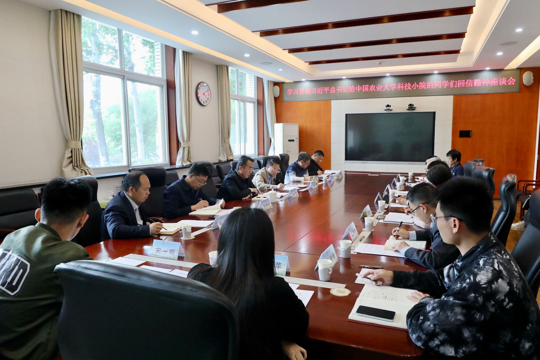 “大家依托科技小院做了很多富有成效的工作,今后要牢记习近平总书记的要求和嘱托,志存高远、脚踏实地,把课堂学习和乡村实践紧密结合起来,厚植爱农情怀,练就兴农本领,在乡村振兴的大舞台上建功立业。”在5月5日召开的学习贯彻习近平总书记给中国农业大学科技小院的同学们回信精神座谈会上,校党委书记赵锋与学校科技小院的师生代表及相关部门负责人深入交流,共同学习研讨习近平总书记给中国农业大学科技小院的同学们回信精神。