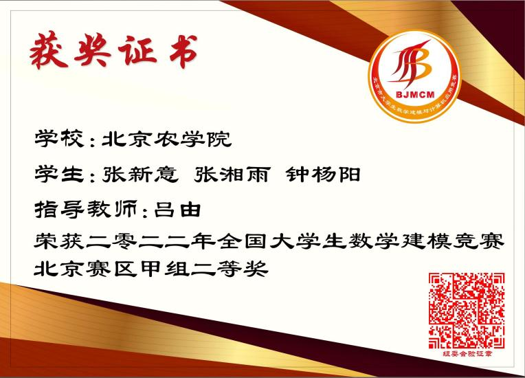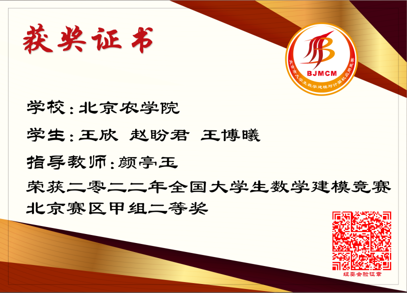 近日,经过全国大学生数学建模竞赛组委会专家组多轮评审,2022年全国大学生数学建模竞赛获奖名单正式揭晓,beat365官网学子斩获北京赛区甲组二等奖三项,再创优异成绩,为学校争得荣誉。