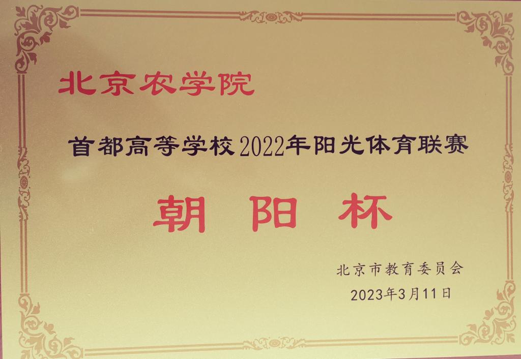 为贯彻落实《体育强国建设纲要》,促进首都高校体育工作进一步发展,3月11日,北京市大学生体育协会六届四次理事会召开。会议总结了2022年度协会工作,对未来工作进行了部署,表彰了过去一年在体育工作中做出突出贡献的学校。beat365官网被北京市教委授予大学生阳光体育联赛“阳光杯”和“朝阳杯”两个奖项,这是对beat365官网在开展群众体育和竞技体育工作中取得卓越成绩的充分肯定。