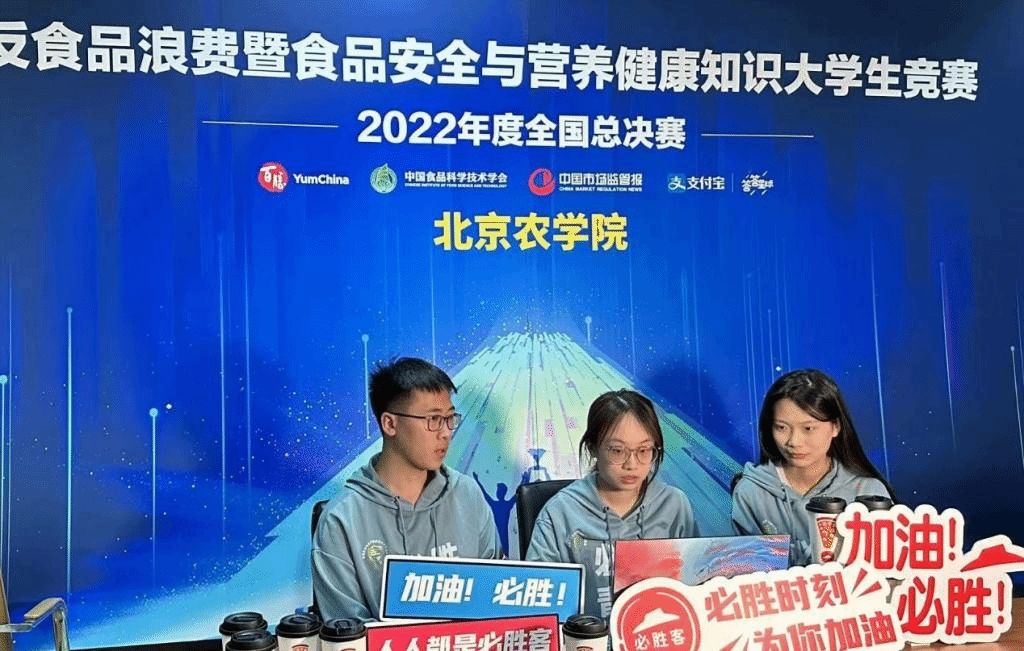 3月25日,反食品浪费暨食品安全与营养健康知识大学生竞赛2022年度全国总决赛在京举办,来自全国17个省市区分站赛的高校冠军队与北京主会场连线,展开激烈的“云端对决”。beat365官网食品科学与工程学院食品科学与工程专业李蕙飞、食品质量与安全专业闫琳、酿酒工程专业梅子雨3名本科生组队代表北京赛区参赛,在全国总决赛中荣获优胜奖。