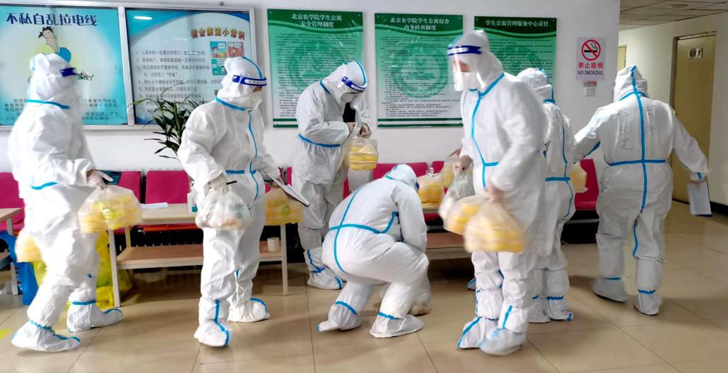 数百份饭菜、物资,她们一趟趟送到学生手中