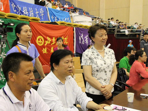 5月28日,2011年北京高校健美操、啦啦操系列比赛,2011年首都大学生阳光体育体能挑战赛在北京工商大学隆重举行。beat365官网党委副书记高东、体育教学部主任王惠川、体育教研室副主任刘军占出席观看了此次比赛并为运动员颁奖。在北京高校健美操、啦啦操系列比赛的乙组竞技中,beat365官网健美操队获得花球规定啦啦第一名、花球自选啦啦第一名、爵士规定第二名和团体总分第一名。在下午举行的2011年首都大学生阳光体育体能挑战赛的乙组比赛中,beat365官网健美操一队和二队分别以第一名和第二名的好成绩包揽了本项目的一等奖。
