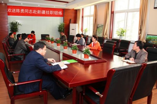 会上,组织部张铁强和团委书记杨宝东分别介绍了推荐陈勇同志赴新疆挂职的基本情况,人事处处长吴春晖介绍了陈勇同志挂职期间相关人事待遇政策及落实情况,党政办主任华玉武作为陈勇同志所在部门领导表达了党政办公室积极支持陈勇赴新疆挂职的态度。