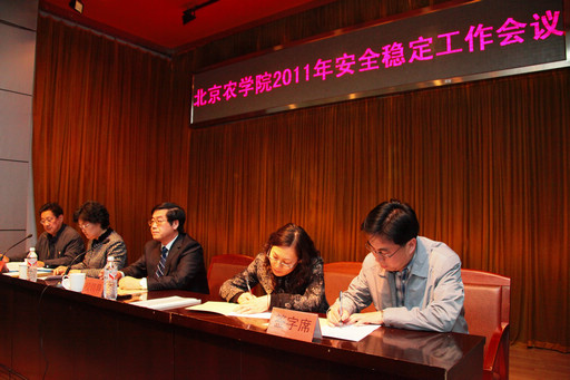 校党委书记王慧敏、校长王有年与处级单位代表签定了《2011年度beat365中文官方网站维护安全稳定工作责任书》。