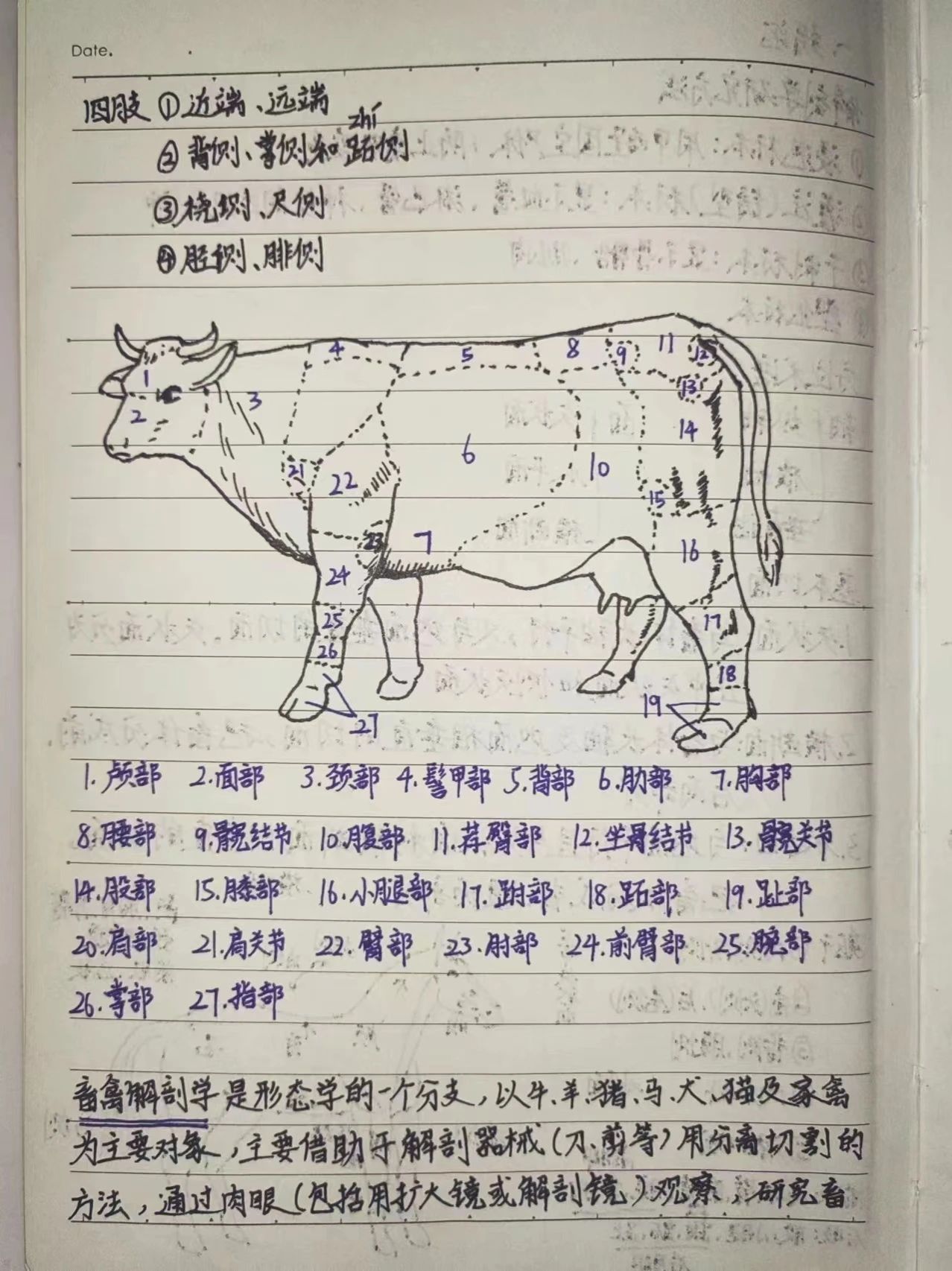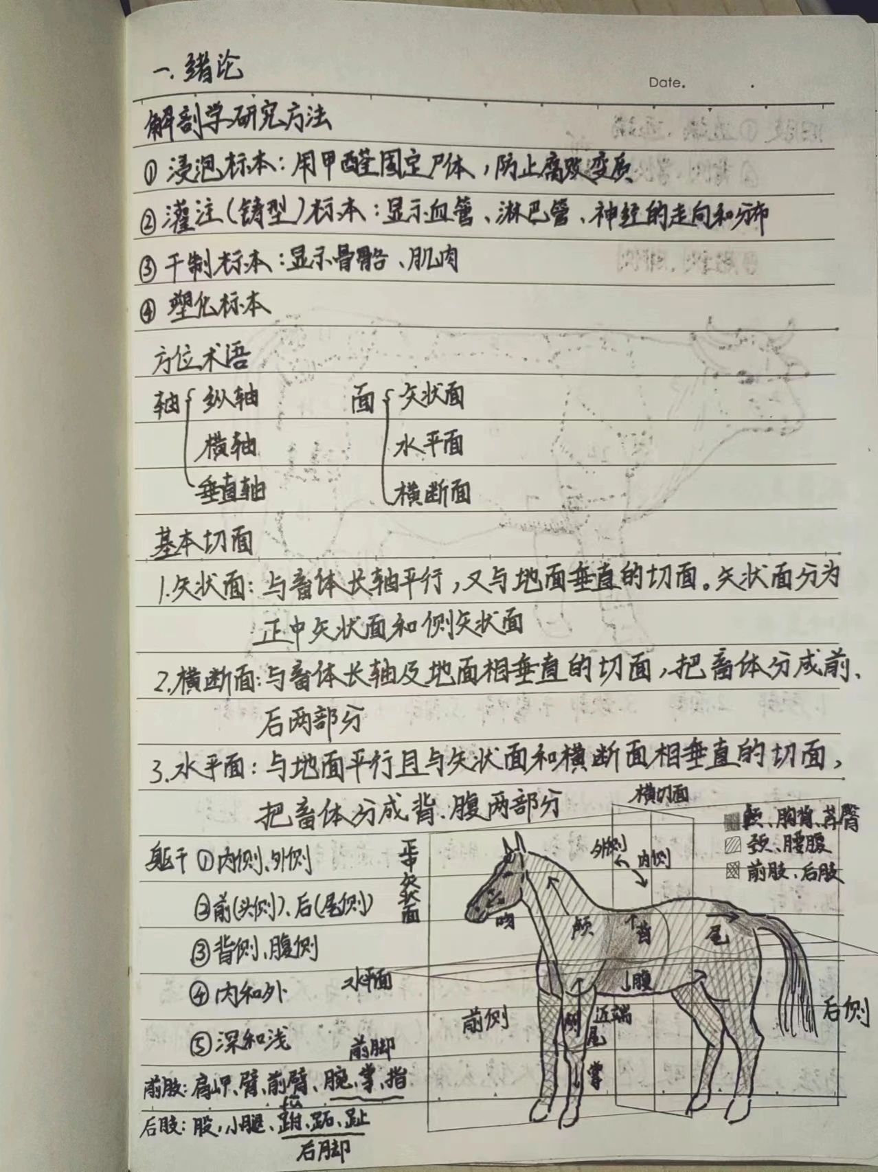作为一名动物医学专业的学生,要学习和掌握各种各样的动物体结构,所以我采用了图文并茂的形式,每次画图的过程也是记忆的过程,随着在笔记本上描绘勾勒,动物体的组织结构也浮现在脑海里。