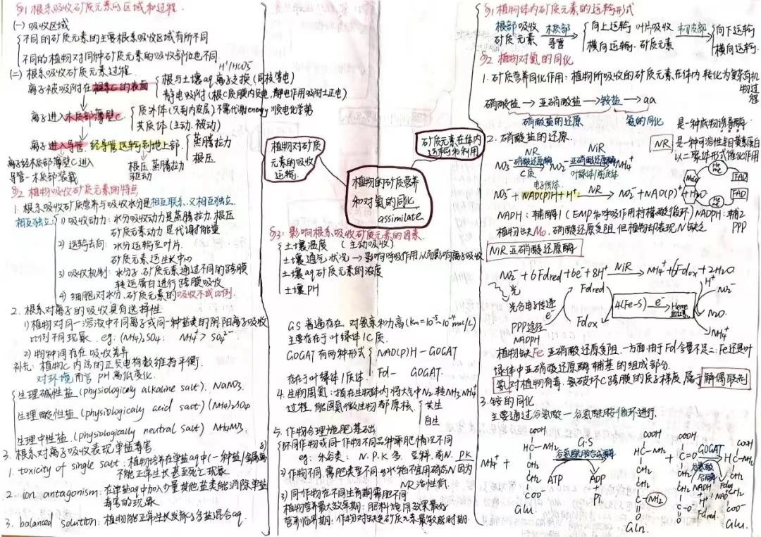 我分享的是植物生理学的笔记,这门课程知识点比较多,知识点之间的相关性也比较大,所以我觉得按章节整理成思维导图的形式来复习是非常有效的学习方法。