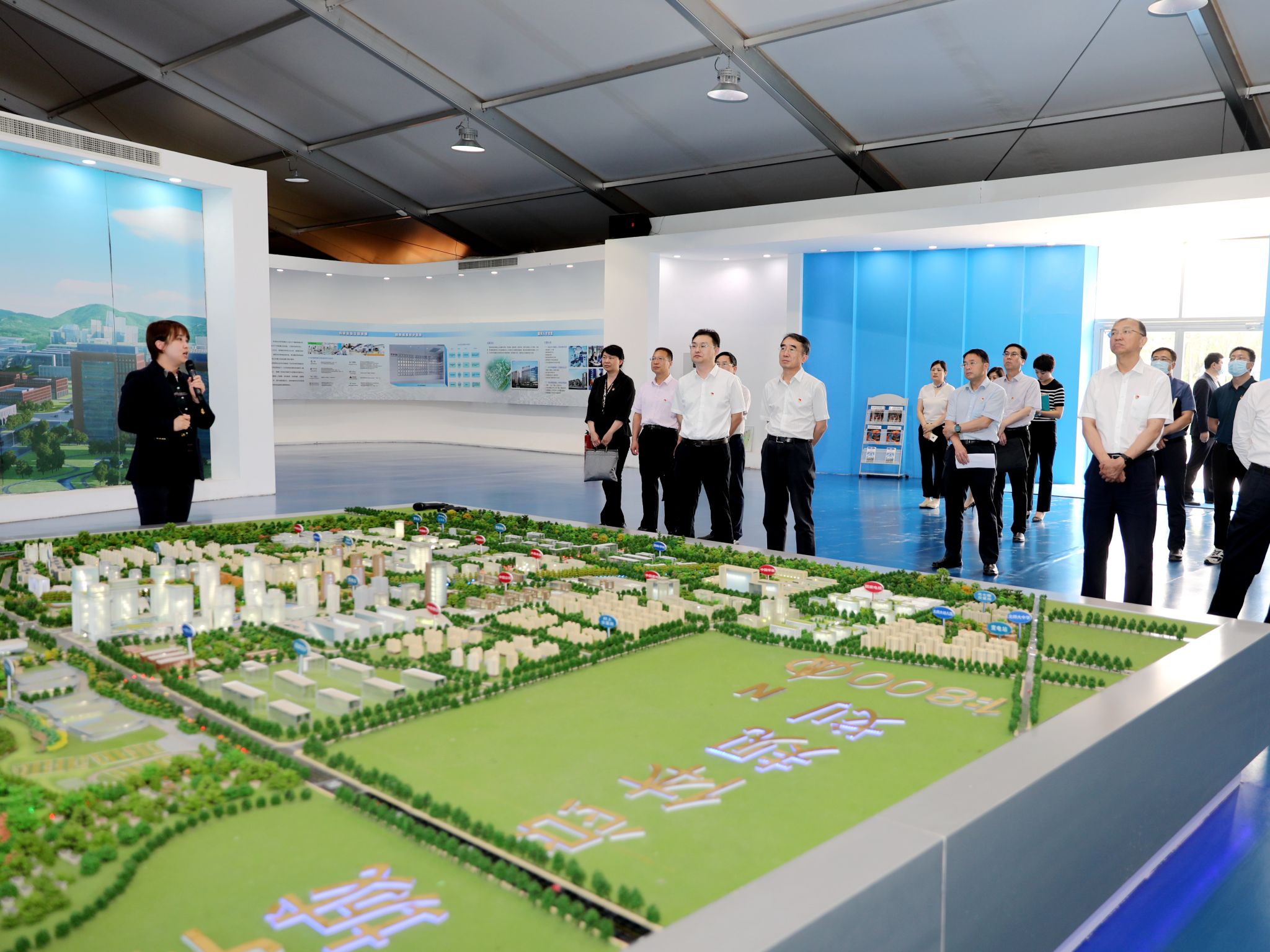 在未来科学城展厅,校领导共同观看了宣传短片与规划沙盘,详细了解未来科学城的建设背景、发展规划以及入驻企业研发方向、人才引进、科技创新机制等具体情况。