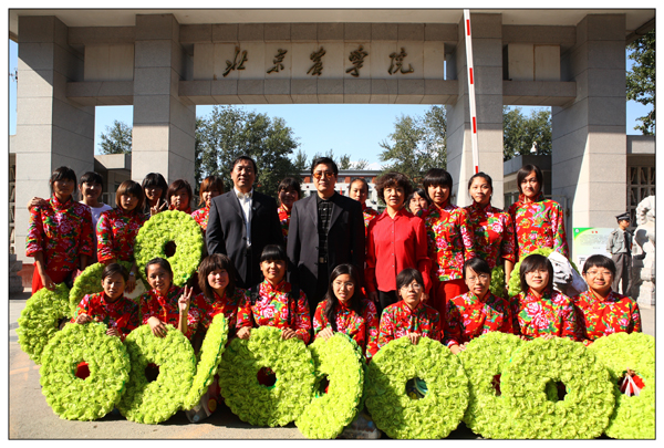 beat365官网参加国庆群众游行方阵师生胜利凯旋 校领导校门口迎接