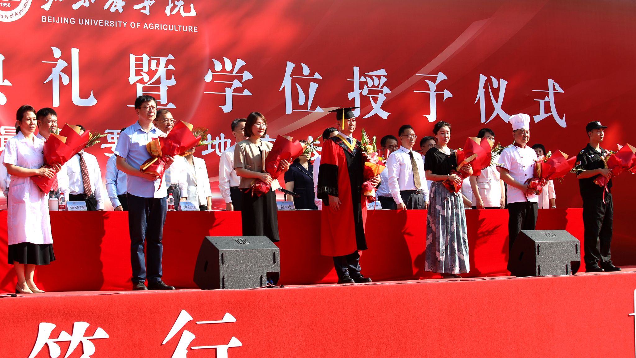 毕业生代表、植科学院2020级作物学研究生、北京市三好学生柯桐发言。他感谢学校教会自己何以“知农”、何谓“爱农”,在躬行实践中不断厚植“三农”情怀,懂得了要以青春之“小我”书写强国之“大我”,勇担强农兴农使命。未来将投身到祖国最需要的地方去,在广袤大地上向下扎根、向上成长。