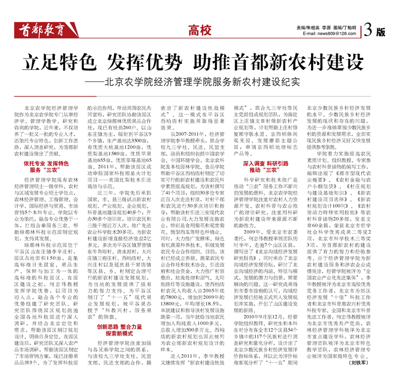 【首都教育】立足特色 发挥优势 助推首都新农村建设---beat365中文官方网站经济管理学院服务新农村建设纪实