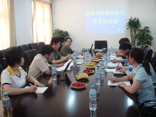 按照beat365官网深入学习实践科学发展观实施方案要求, 5月23日下午,经济管理学院召开了系领导班子专题民主生活会。校长王有年出席了会议,经济管理学院领导班子成员、教授代表工会代表、基层支部书记代表、民主党派代表参加了民主生活会。经济管理学院党总支书记李华主持会议。